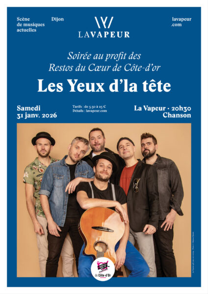 Un concert exceptionnel le 31 janvier 2026 à La VAPEUR, salle bien connue des dijonnais dont tous les bénéfices iront aux Restos du Coeur du 21 !